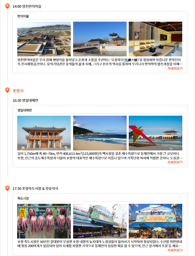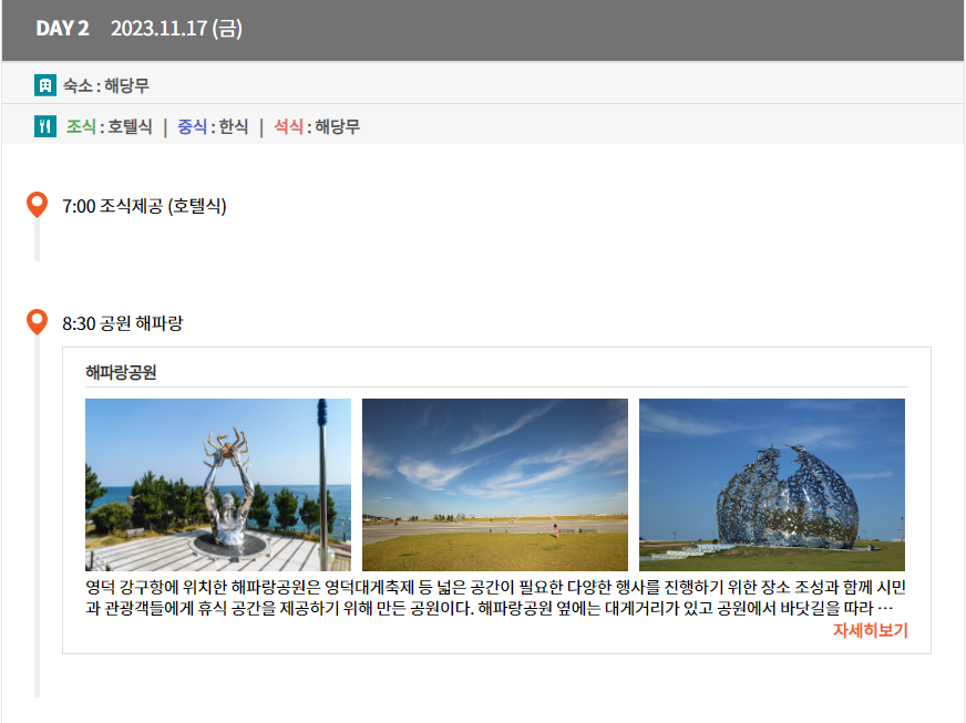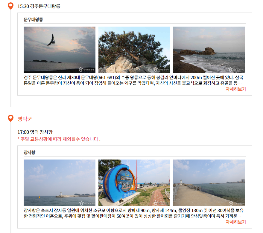 아래 여행 일정 확인해보세요.