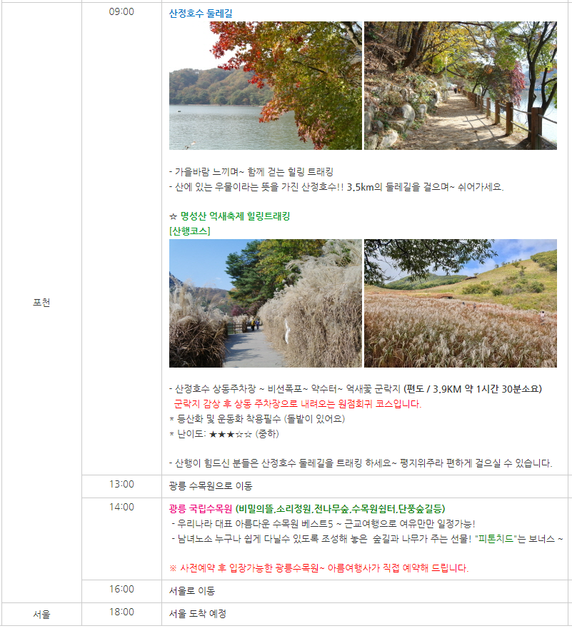 2. 광릉 국립수목원 / 산정호수 힐링 트래킹, 명성산 억새축제