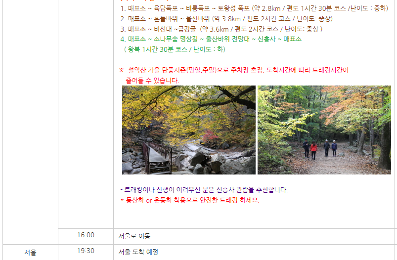 | 불포함 내역 | 백담사셔틀(하행), 여행자보험, 기타 개인경비 등 |